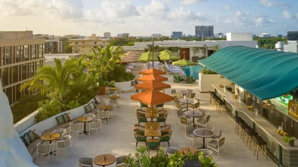 O Mayfair é um refúgio que encanta em cada detalhe. O hotel é projetado ao redor de exuberantes jardins internos, com uma estrutura que privilegia a luz natural e a integração com a natureza. No rooftop, o cenário é ainda mais especial: uma piscina convidativa, um bar animado e um restaurante sofisticado formam o ambiente perfeito para relaxar ou aproveitar uma noite inesquecível, com vista panorâmica de Miami.